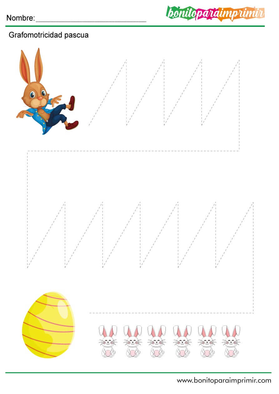 Puedes descargar fácilmente estas fichas de pascua con ejercicios de grafomotricidad para desarrollar las habilidades motoras de los niños que están aprendiendo el uso de un lápiz, solamente tiene que hacer trazos y líneas, así mejorara su precisión y tendrá mayor rapidez al momento de empezar a escribir.