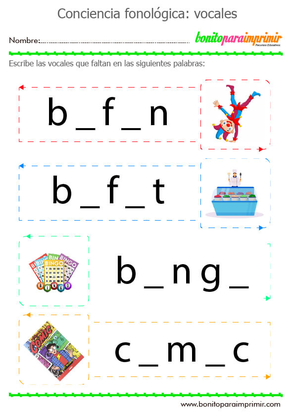 ¡El día de hoy estamos felices de compartir contigo este bonito material educativo para completar palabras con vocales para niños! En este cuaderno de actividades usaremos la lectoescritura y el lenguaje como también la conciencia fonológica. Con diversos ejercicios para
