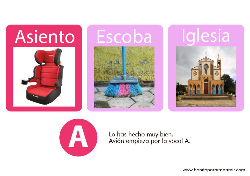 Todas las vocales tienen 4 fichas para su práctica.
