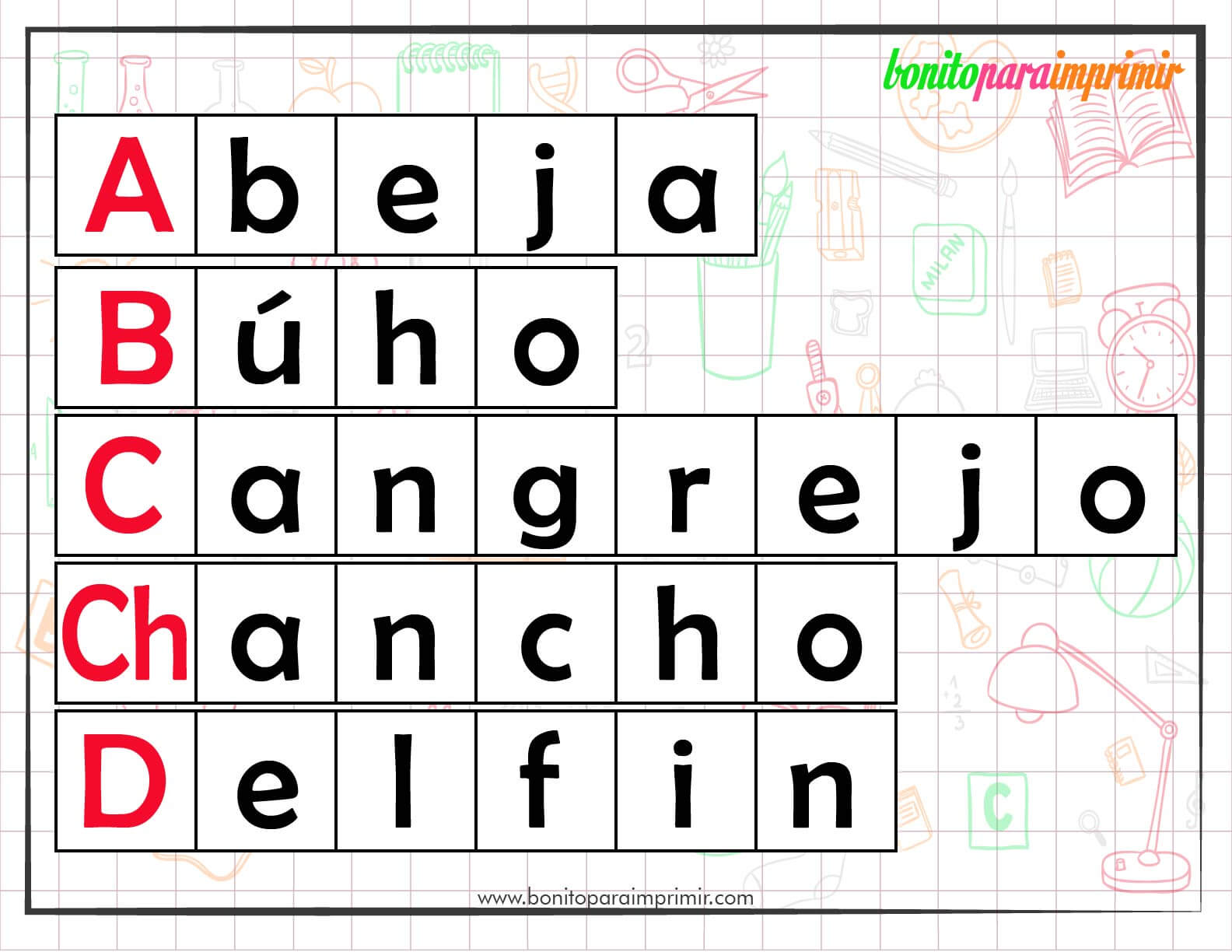 Como padres muchas veces buscamos material de trabajo que nos ayude en nuestro afán de ver a nuestros hijos aprender el abecedario sin que se aburran. Es por eso que con las siguientes fichas para repasar lograremos que los niños entiendan el valor de cada palabra
