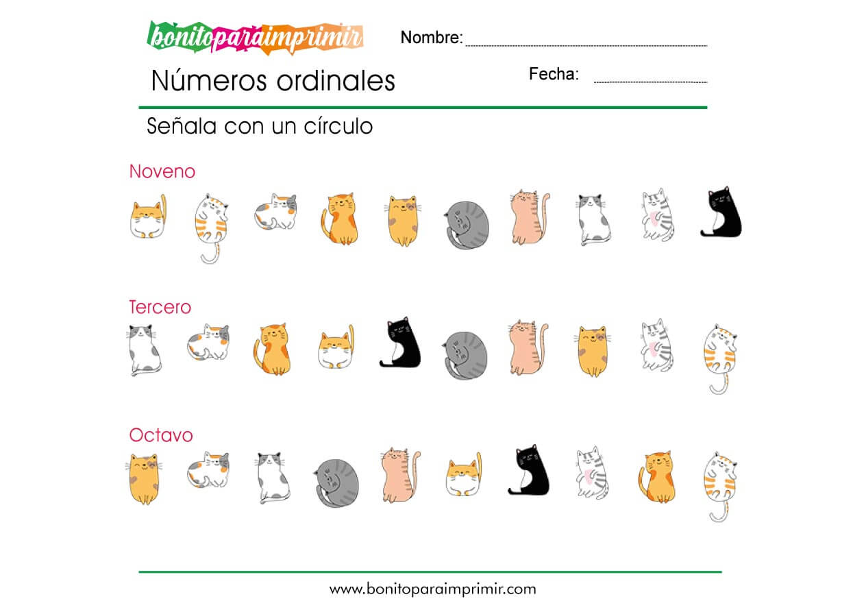 Ejercicios de números ordinales para niños