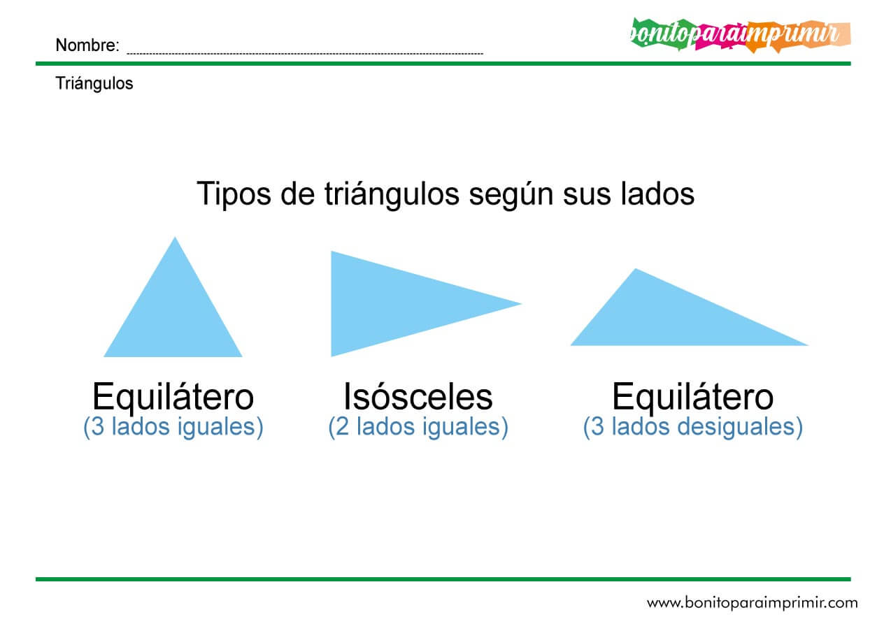 Sus nombres por sus lados son: triángulo equilátero, triangulo isósceles y triangulo escaleno.